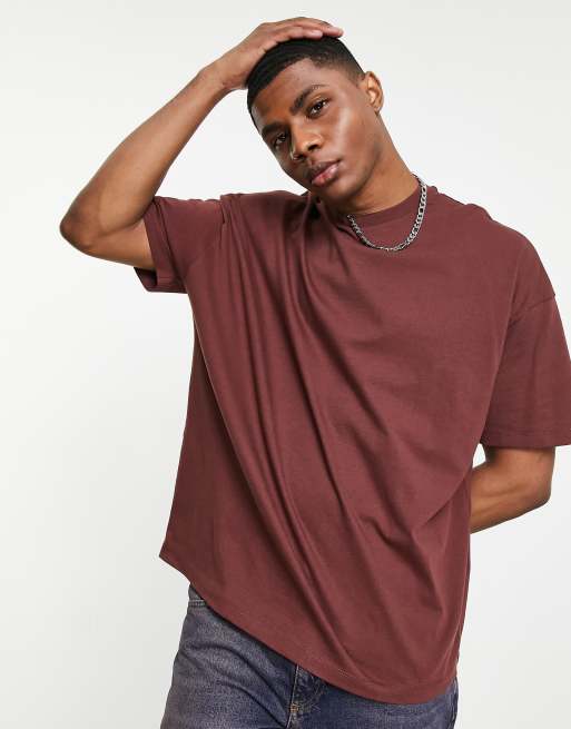 ASOS DESIGN – Oversize-T-Shirt mit Rundhalsausschnitt in Dunkelbraun