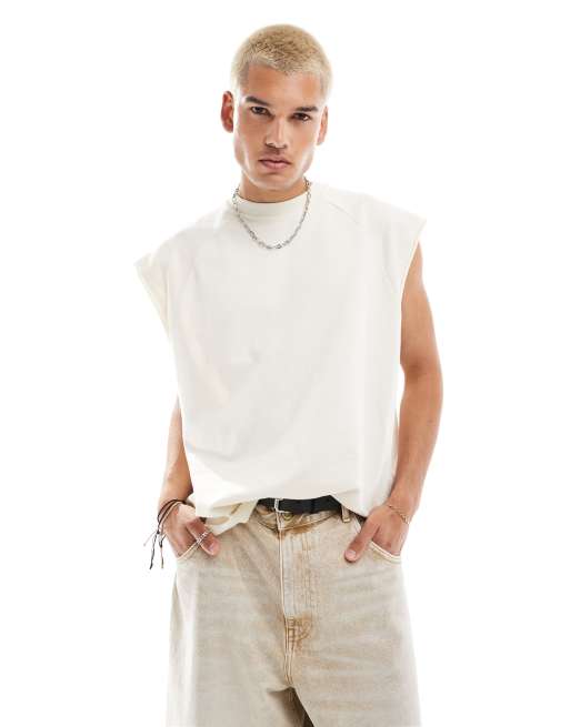 ASOS DESIGN – Oversize-Tanktop aus Loopback-Stoff in gebrochenem Weiß mit Ziernaht