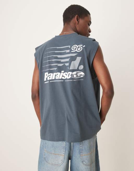 ASOS DESIGN – Oversize-Tanktop in Anthrazit mit Sport-Print