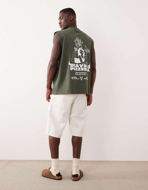 ASOS DESIGN – Oversize-Tanktop in Grün mit Pizza-Grafik