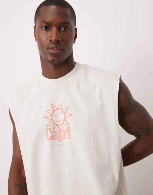 ASOS DESIGN – Oversize-Tanktop in Wollweiß mit Sonnengrafik und tiefem Armausschnitt