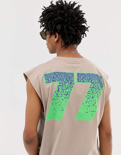 ASOS DESIGN – Oversize-Trägershirt mit neonfarbenem Ziffer-Print