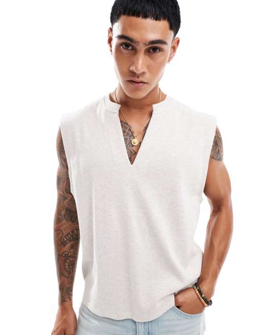 ASOS DESIGN – Oversize-Trägertop in Hellbeige meliert mit V-Ausschnitt