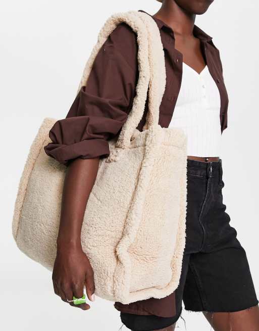 ASOS DESIGN – Oversize-Tragetasche aus Teddyfell in Creme - CREAM