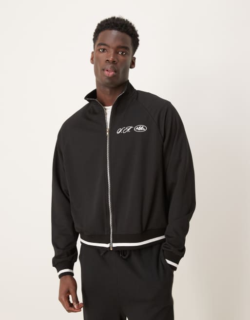 ASOS Design – Oversize-Trainingsjacke aus Piqué in Schwarz