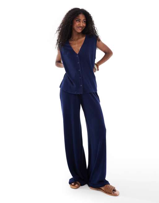 ASOS DESIGN – Oversize-Weste und Hose aus strukturiertem Strick in Marineblau