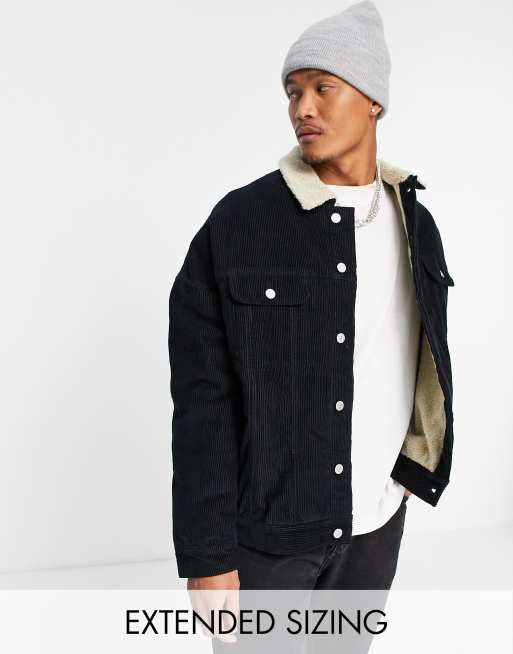 ASOS DESIGN – Oversize-Westernjacke aus Cord in Schwarz mit Teddyfutter und<br />-kragen