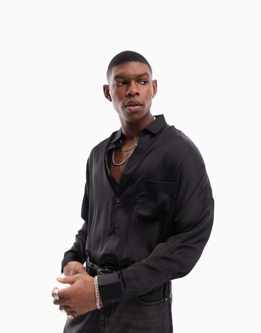 ASOS DESIGN – Oversized-Hemd aus Satin in Schwarz
