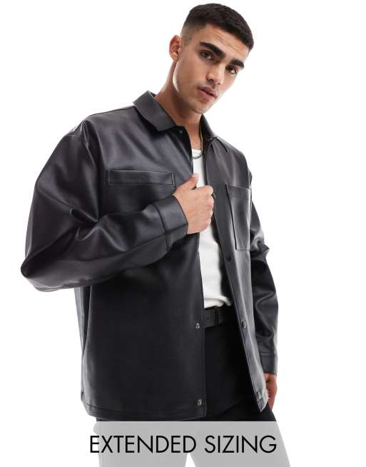 ASOS DESIGN – Oversized-Hemdjacke aus Kunstleder in Schwarz
