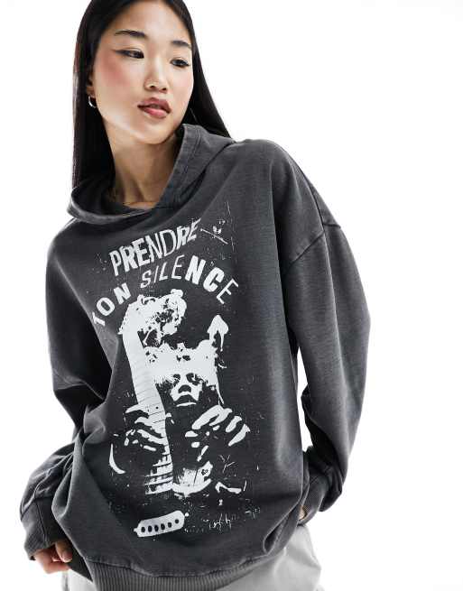 ASOS DESIGN – Oversized-Kapuzenpullover in Schwarz mit Indiband-Grafik