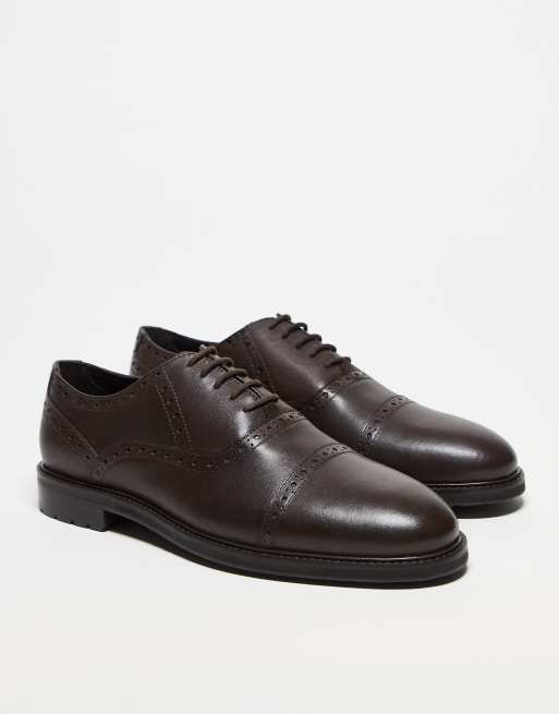 ASOS DESIGN – Oxford-Schnürschuhe aus braunem Leder mit Budapester-Details