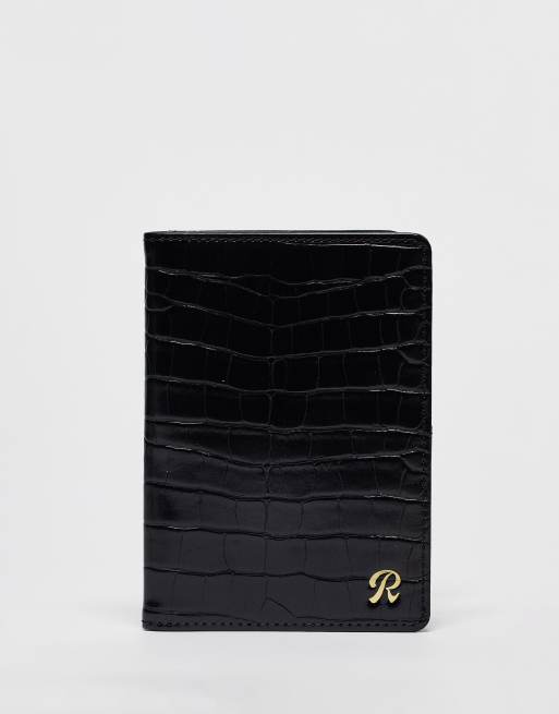ASOS DESIGN – Pass-Etui in Kroko-Schwarz mit personalisierter R-Initiale