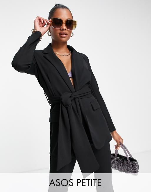 ASOS DESIGN Petite – Anzugblazer aus Jersey in Schwarz mit Obi-Bindegürtel in der Taille