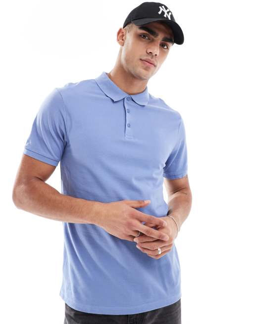 ASOS DESIGN – Pikee-Polohemd in Mittelblau