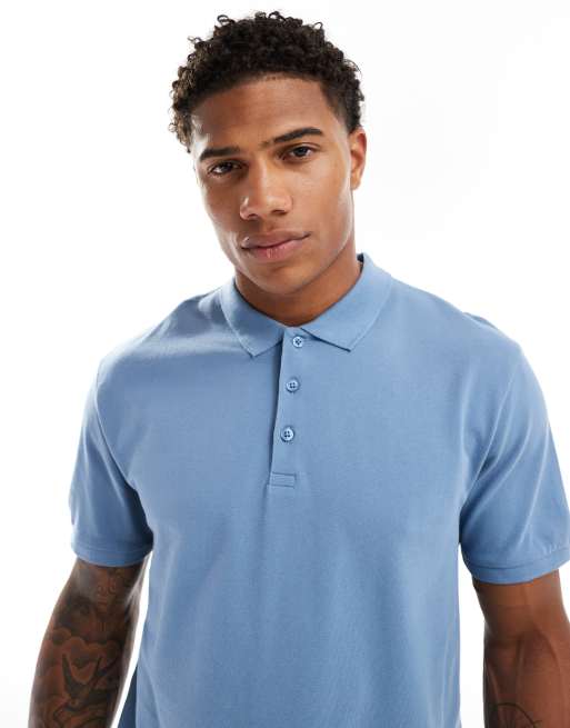 ASOS DESIGN – Pikee-Polohemd in Mittelblau
