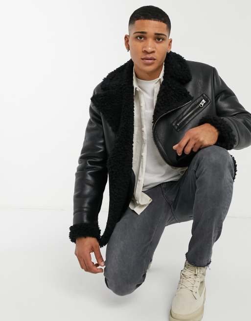 ASOS DESIGN – Pilotenjacke in Lammfelloptik in Schwarz