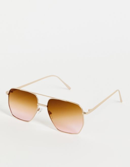 ASOS DESIGN – Pilotensonnenbrille mit Metallrahmen in matter Goldoptik und Gläsern mit Farbverlauf