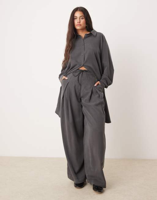 ASOS DESIGN – Plissierte Hose in Grau mit weitem Bein und Bindeband, Kombiteil