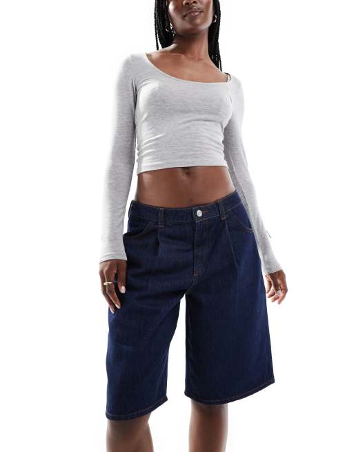ASOS DESIGN – Plissierte Jeans-Jorts in Indigoblau