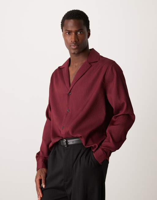 ASOS DESIGN – Plissiertes, kastiges Oversize-Hemd in Rot