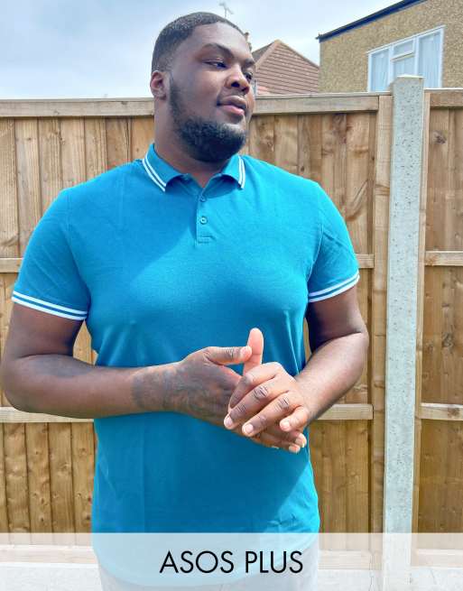 ASOS DESIGN Plus – Blaues Pikee-Polohemd mit Kontraststreifen