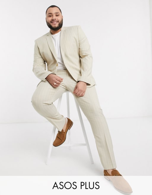 ASOS DESIGN – Plus – Eng geschnittener Anzug in Stone mit Nadelstreifen