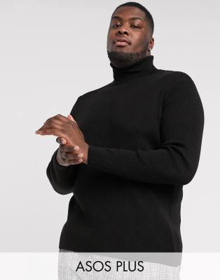 ASOS DESIGN Plus – Gerippter Rollkragenpullover in Schwarz