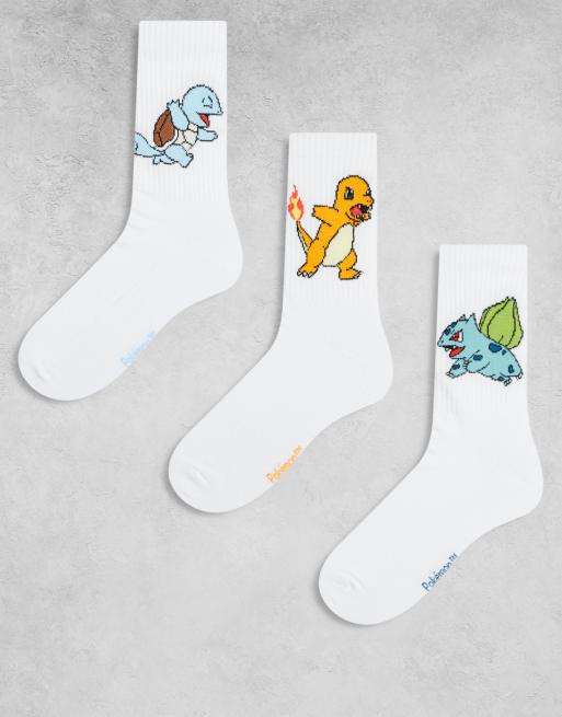 ASOS DESIGN – Pokémon – 3er-Pack Socken in Weiß mit Pokémon-Motiv