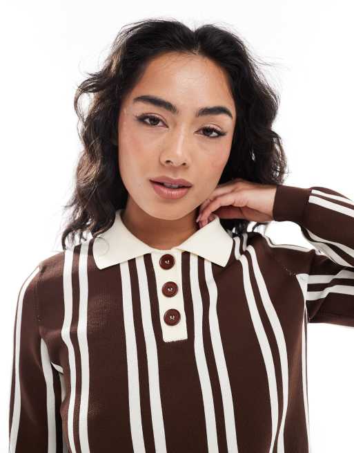 ASOS DESIGN – Polo-Oberteil aus kompaktem Strick in gestreiftem Braun