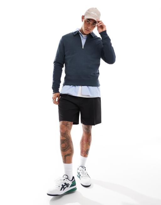 ASOS DESIGN – Polo-Sweatshirt in Mittelblau mit Reißverschluss