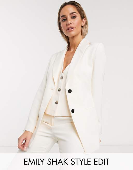 ASOS DESIGN – Pop – Taillierter Anzugblazer in Elfenbein