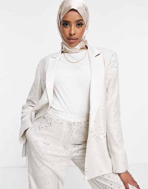 ASOS DESIGN – Premium-Anzugset mit Paillettenbesatz in Creme