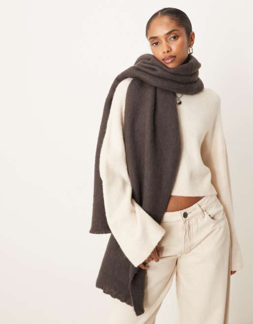 ASOS DESIGN – Premium – Breiter gewebter Schal aus Wollmix in Schokoladenbraun