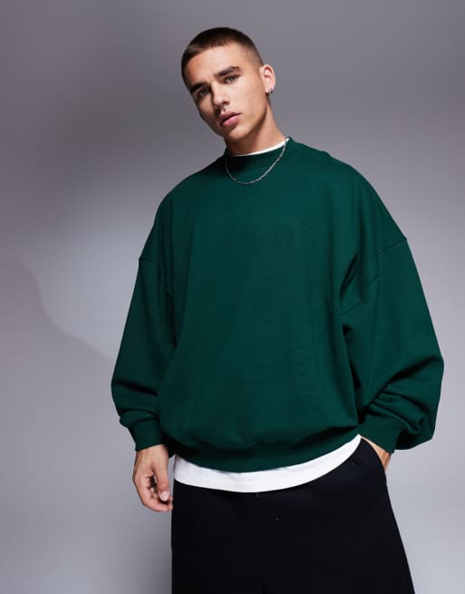 ASOS DESIGN – Premium – Schweres Extrem-Oversize-Sweatshirt in Dunkelgrün, 400 g/m²