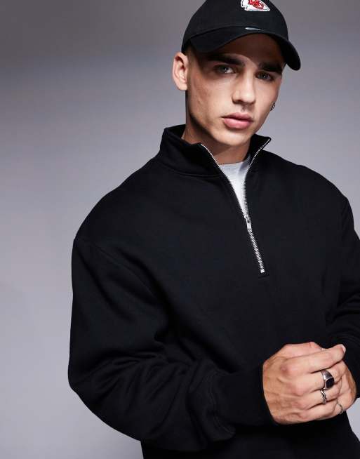 ASOS DESIGN – Premium – Schweres Oversize-Sweatshirt in Schwarz mit kurzem Reißverschluss, 400 g/m²