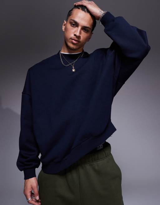 ASOS DESIGN – Premium – Super-Oversize-Sweatshirt aus schwerem Stoff in Marineblau, 400 g/m²