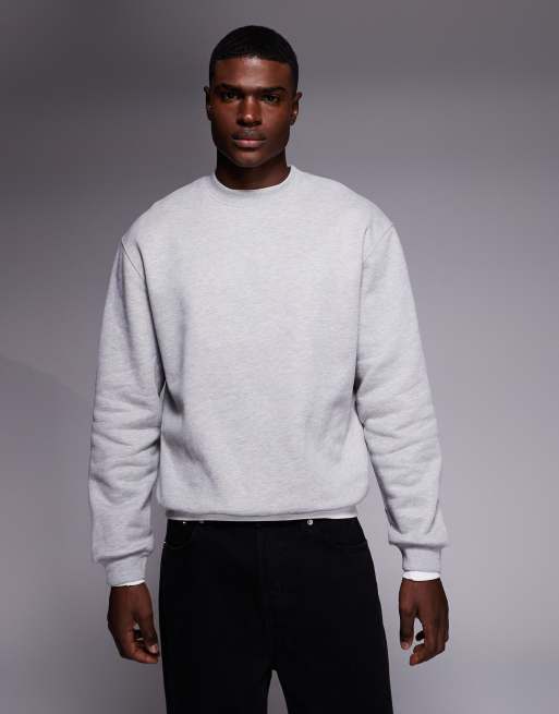 ASOS DESIGN – Premium – Sweatshirt aus schwerem Material in meliertem Grau, 400 g/m²
