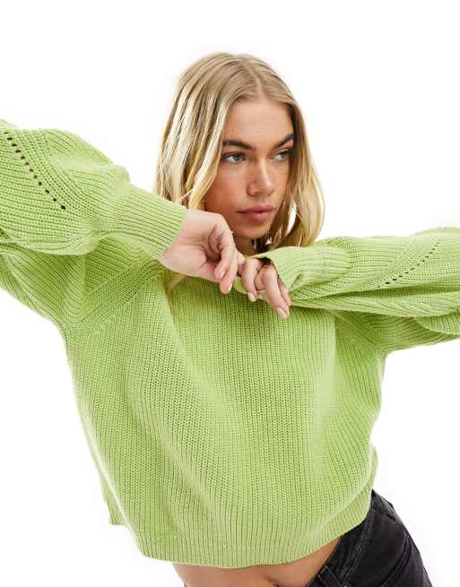 ASOS DESIGN – Pullover in Grün mit Rundhalsausschnitt und Ballonärmeln