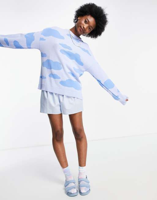 ASOS DESIGN – Pullover mit Wolkenmuster in Blau
