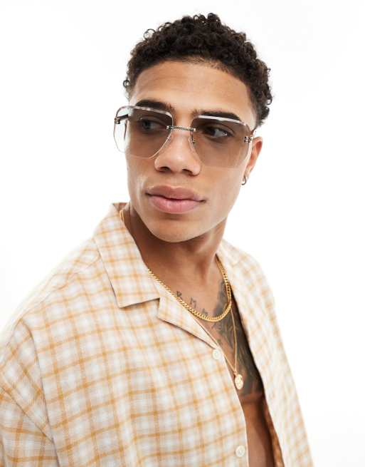 ASOS Design – Randlose Sonnenbrille in Silber-Optik mit Schildpatteffekt-Details
