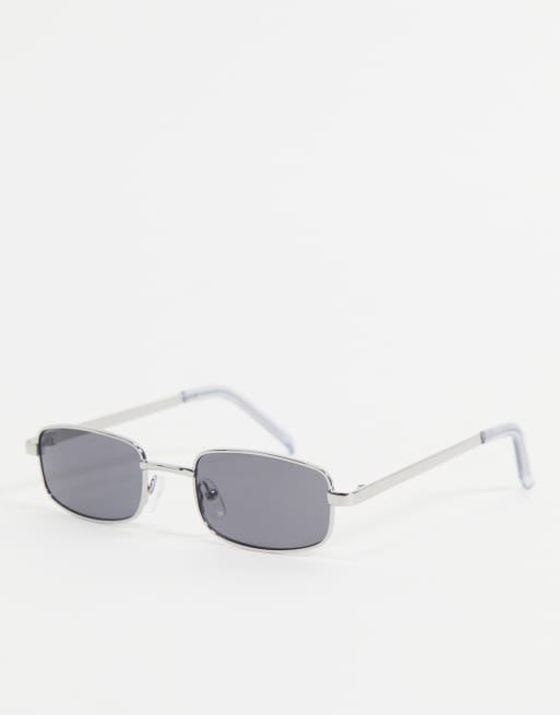 ASOS DESIGN – Rechteckige Sonnenbrille in Silberfarben mit getönten Gläsern