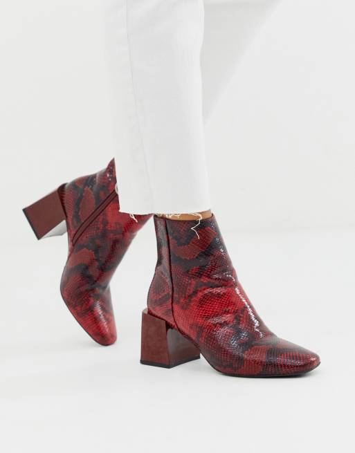 ASOS DESIGN – Reed – Ankle Boots mit Absatz und rotem Schlangenledermuster