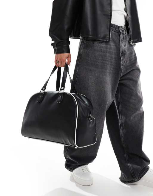 ASOS DESIGN – Reisetasche in Schwarz aus Kunstleder mit weißer Kontrastpaspelierung