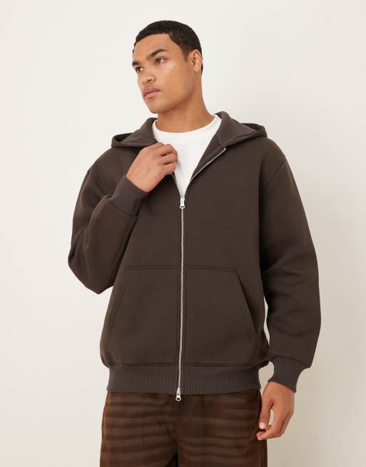ASOS DESIGN – Relaxed-Fit-Kapuzenjacke in Braun aus schwerem Stoff in Neoprenoptik mit Reißverschluss