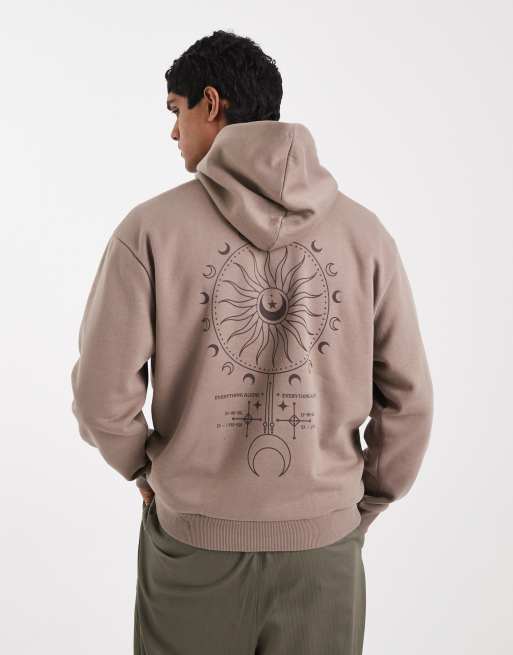 ASOS DESIGN – Relaxed-Fit-Kapuzenpullover in Braun mit Himmelskörper-Print