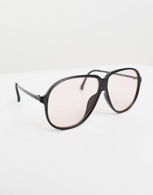ASOS DESIGN – Retro-Pilotensonnenbrille mit Rahmen in Mattschwarz und rosa Gläsern
