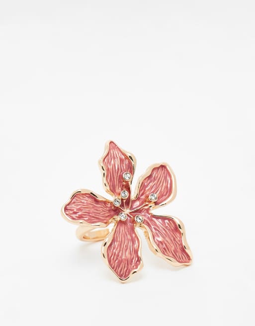 ASOS DESIGN – Ring in sanftem Rosa und Goldton mit Blumendetail