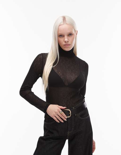 ASOS DESIGN – Rollkragenoberteil aus dünnem Stoff in transparentem Schwarz