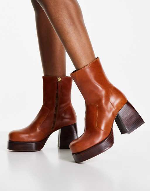 ASOS DESIGN – Rowan – Hochwertige Lederstiefel in Hellbraun mit Absatz