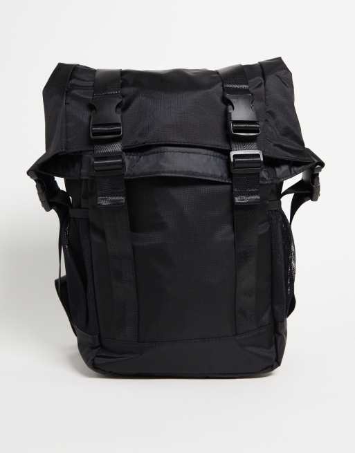 ASOS DESIGN – Rucksack mit Doppelriemen aus schwarzem Nylon und Rollverschluss